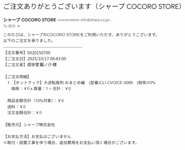 ①「おまとめ編」が付与されますと、ご購入時と同様に「ご注文メール」が届きます。