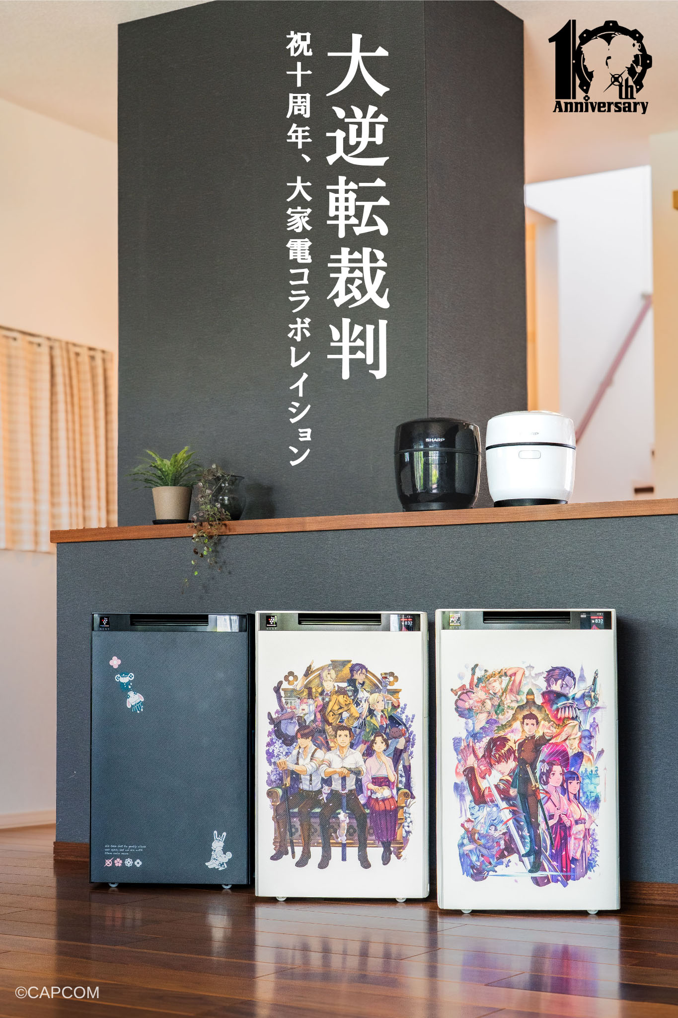 大逆転裁判シリーズは、19世紀末・明治時代の日本と倫敦を舞台に、成歩堂龍一の先祖・成歩堂龍ノ介が活躍する大逆転劇。2025年7月、発売から10周年を迎えました。それを記念して、シャープ株式会社とまさかの大家電コラボが実現。本作のアートディレクター&キャラクターデザイナー・塗 和也さんと、大逆転裁判1&2プロデューサー・牧野 泰之さんにお話をうかがいました。