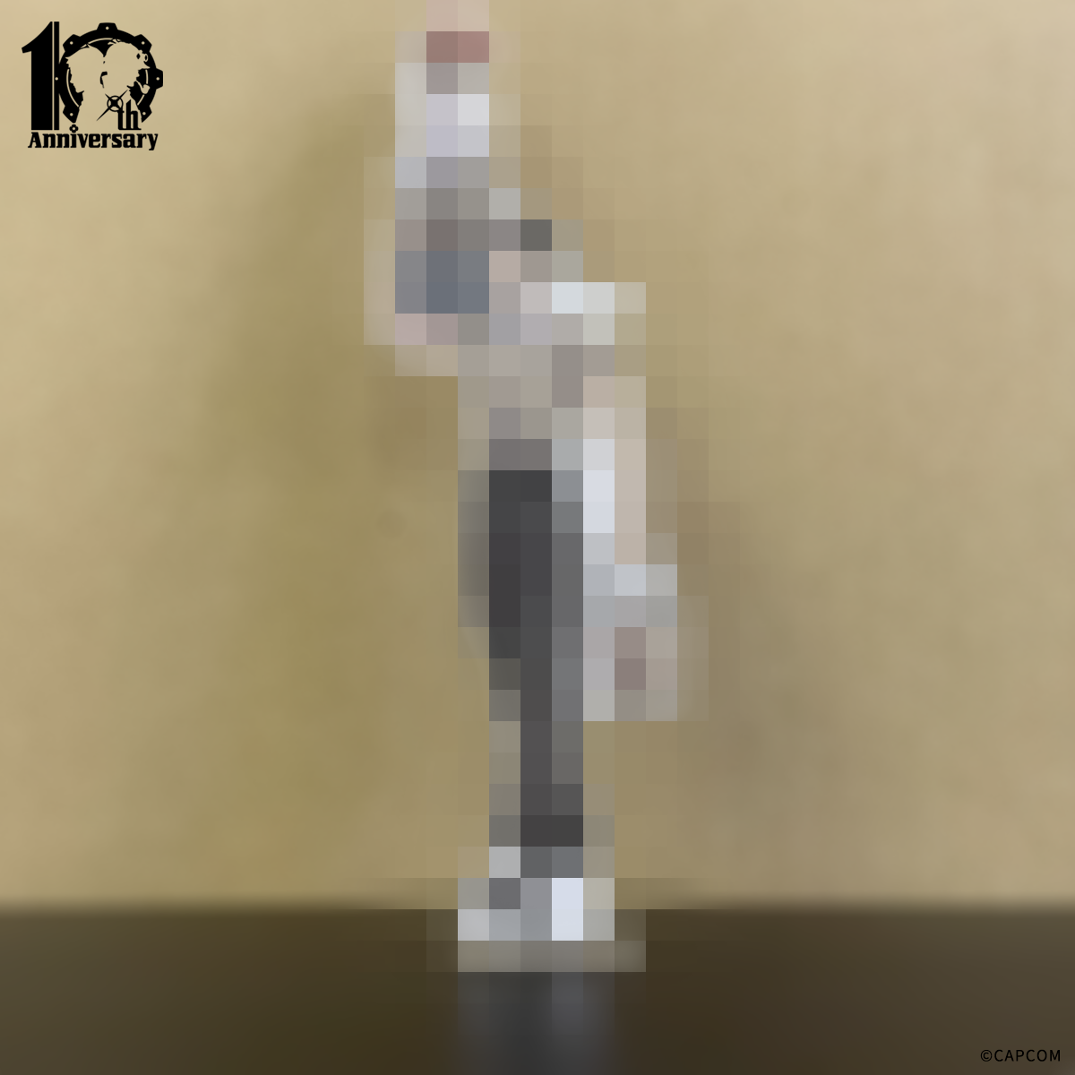 ファンの方からも、カプコンカフェの展示のシルエットを見て『きっと○○なんだろうな!』という予想が出てました。いったんストアにはキャラが分からないようにして全員の写真を掲載しています。そちらは最初普通のボカシだったんですけど、これだとアカンという事で塗さんにモザイクをつけていただきました。 |