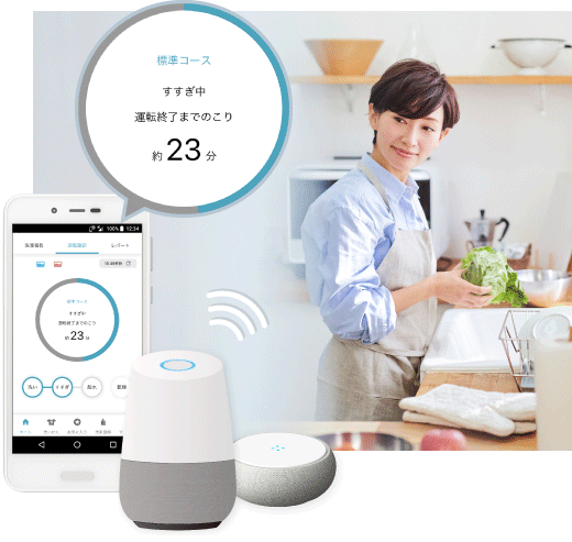また、話題のスマートスピーカーにも対応!話しかけると季節や天気に応じたおすすめの洗濯方法や洗濯機の運転状況をお知らせしてくれます。